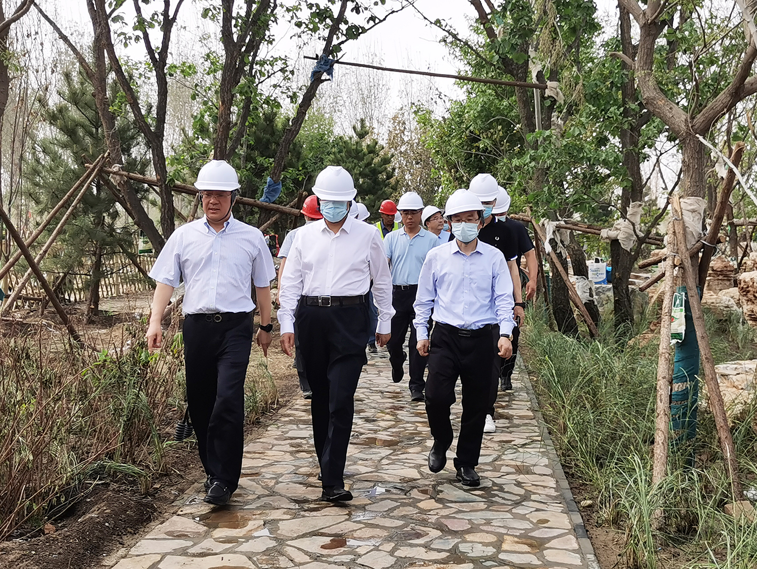 張建軍董事長(zhǎng)向吳清海書(shū)記匯報(bào)了雄安郊野公園承德園的規(guī)劃設(shè)計(jì)、功能布局、工程建設(shè)等有關(guān)情況后,吳清海書(shū)記一行實(shí)地踏查了承德展園施工現(xiàn)場(chǎng)。
