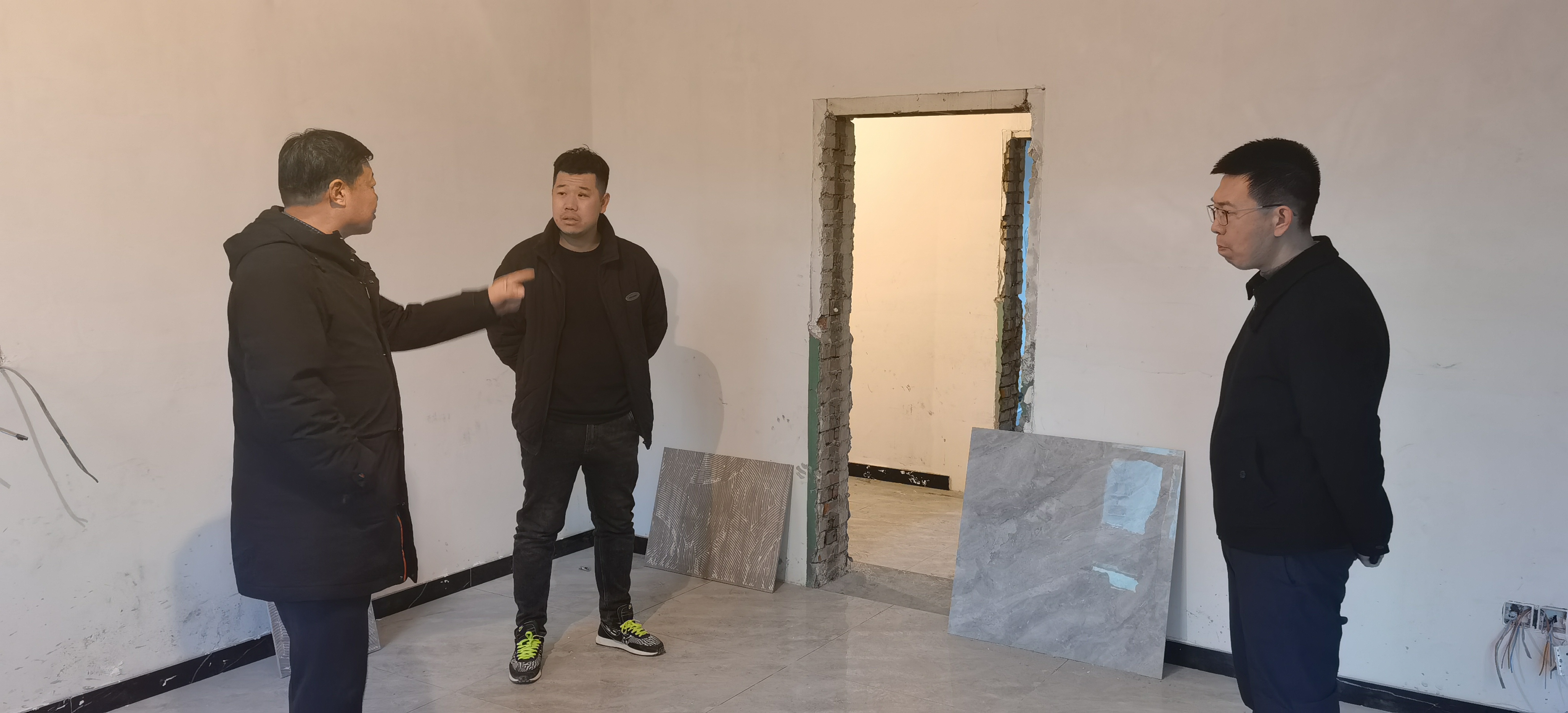 在火藥庫(kù)溝原食藥監(jiān)局辦公樓裝修施工現(xiàn)場(chǎng),徐俊儒要求施工單位做好人員管理和水、電管護(hù)。進(jìn)出現(xiàn)場(chǎng)人員要做好人員登記和溫度測(cè)量。在施工時(shí)對(duì)涉及焊接、切割等高風(fēng)險(xiǎn)工作時(shí),要更加注重安全防護(hù),確保安全施工。