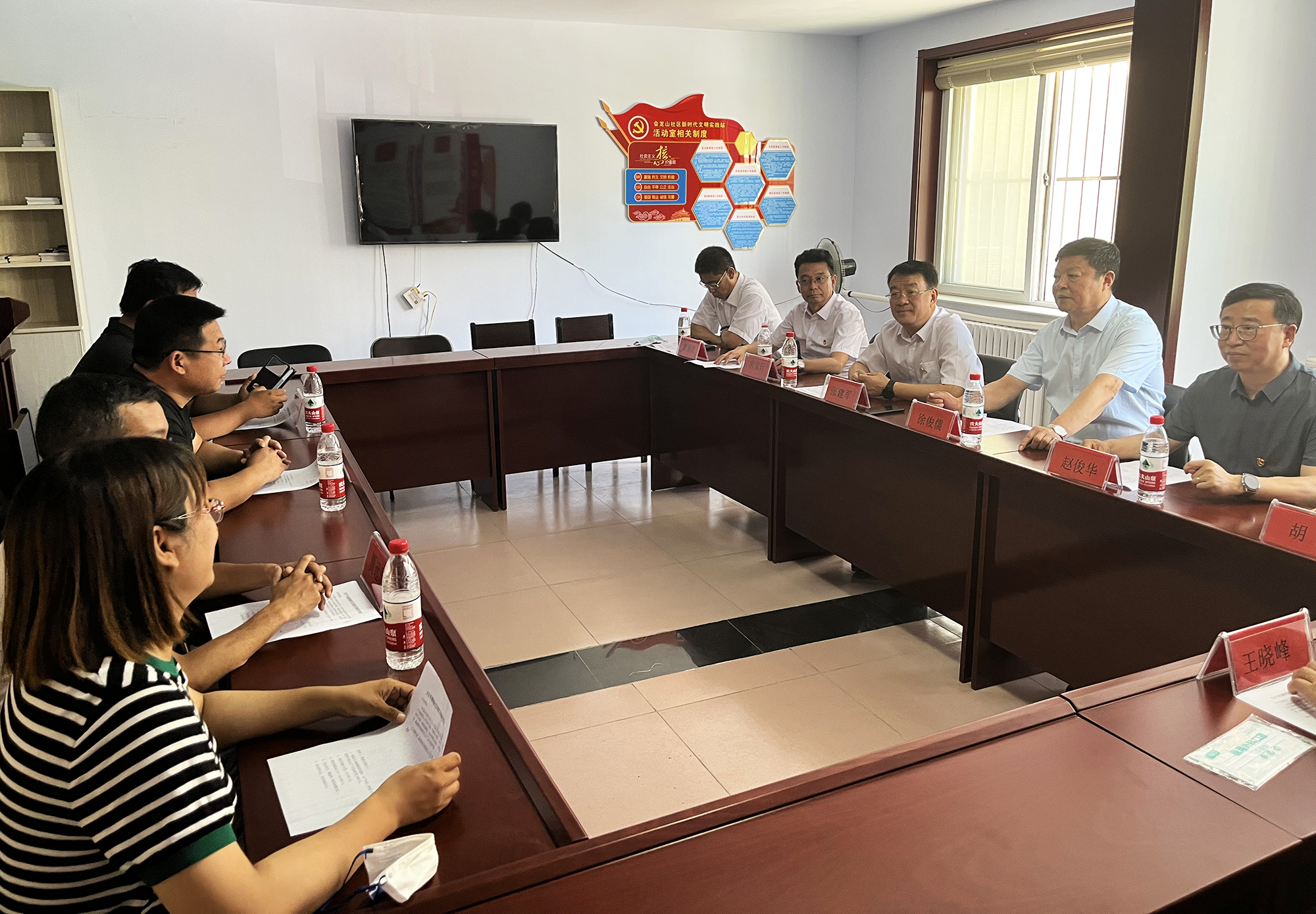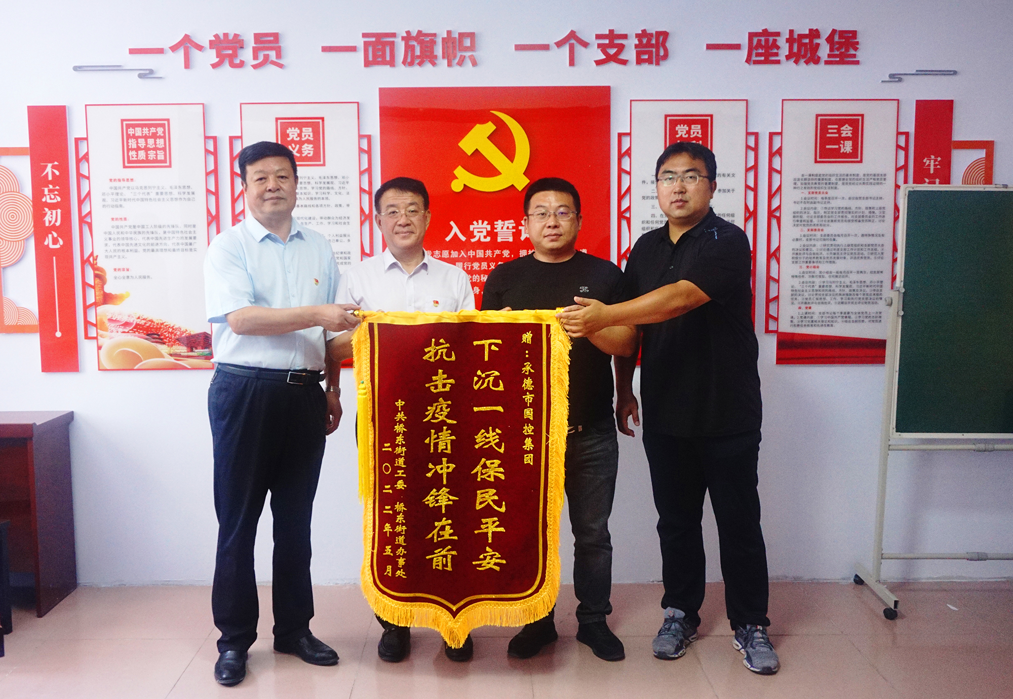 捐贈儀式后,國控集團領(lǐng)導(dǎo)班子與橋東街道、會龍山社區(qū)主要負(fù)責(zé)人,就結(jié)對幫建工作進行座談,詳細(xì)了解了創(chuàng)城工作開展情況、存在問題及下一步打算,針對社區(qū)基礎(chǔ)設(shè)施不完善、公共停車泊位施劃不合理、樓道雜亂和小廣告亂貼等問題,研究制定了具體舉措。會上,為感謝國控集團在抗擊疫情和結(jié)對幫建工作中的大力支持,橋東街道、會龍山社區(qū)向集團公司贈送了“下沉一線保民平安、抗擊疫情沖鋒在前”錦旗。
