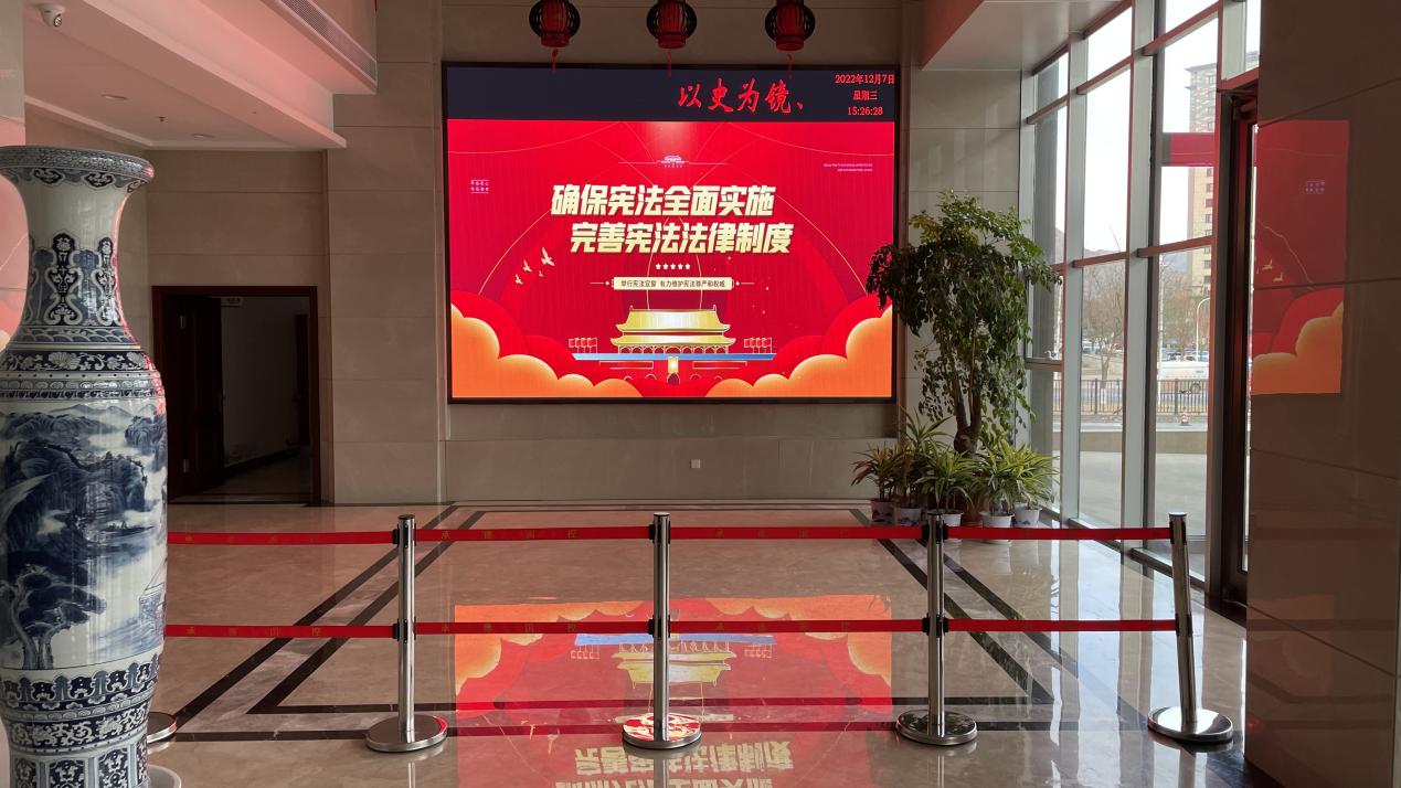 集團(tuán)公司通過(guò)LED大屏循環(huán)播放宣傳圖片等方式,號(hào)召全體職工,積極投身于憲法學(xué)習(xí)宣傳活動(dòng)中來(lái),使憲法精神更加深入人心。