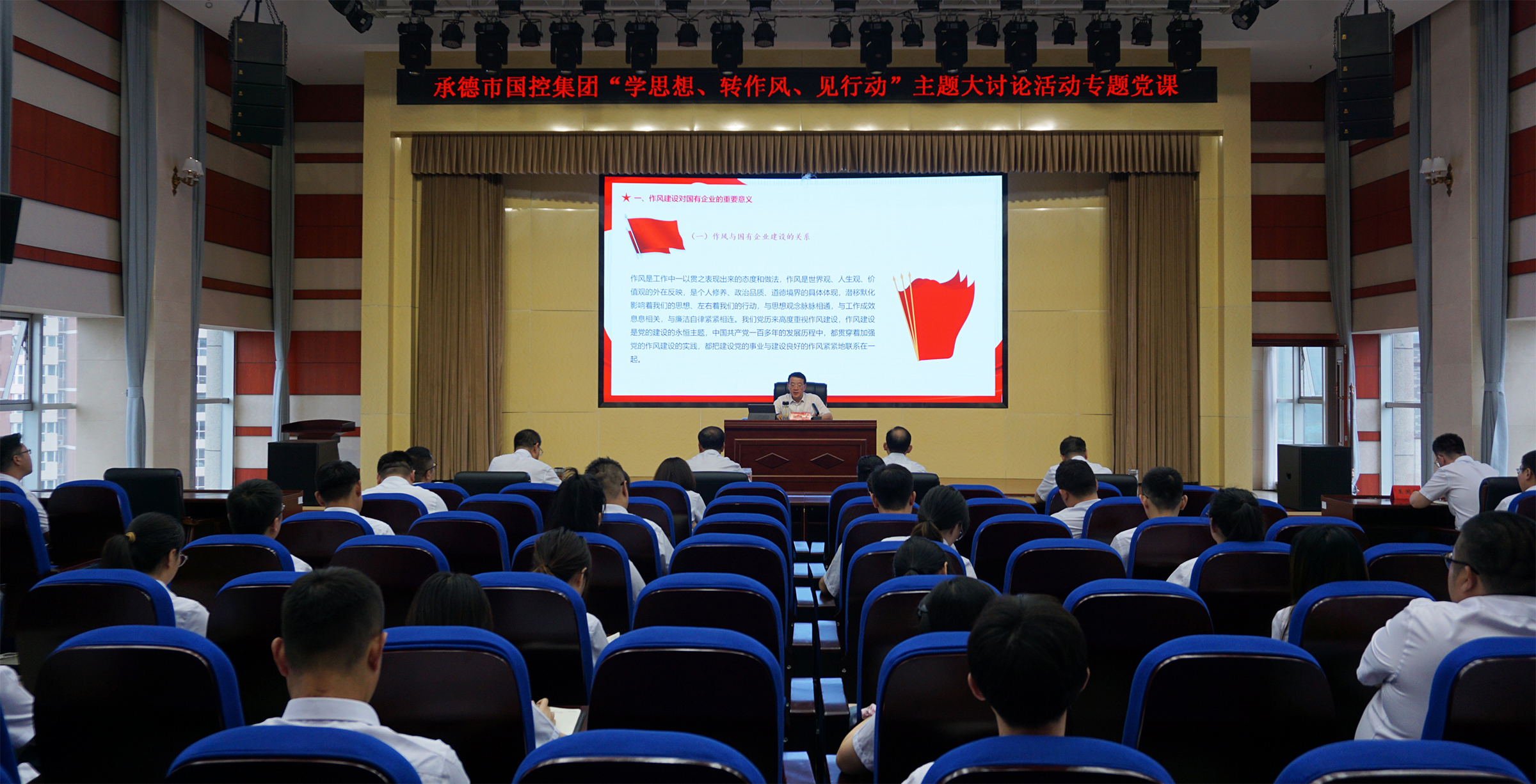 7月12日,為深入學習貫徹習近平總書記關于堅持不懈抓好作風建設的重要論述,落實市委市政府關于在全市開展“學思想、轉作風、見行動”主題大討論活動精神,國控集團召開“學思想、轉作風、見行動”主題大討論活動專題黨課。