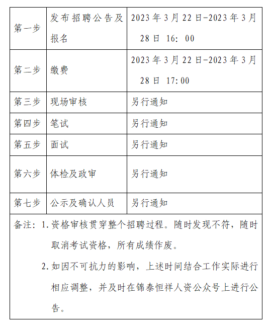 (二)體檢時間、地點及注意事項在“錦泰恒祥人資公眾號”進行通知。