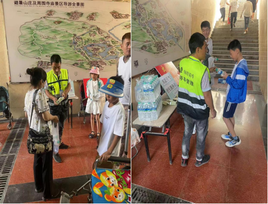 近日,受暖性高壓脊影響,我市迎來持續(xù)數(shù)天的高溫天氣,相關(guān)部門相繼發(fā)布了高溫橙色、紅色預(yù)警。市國動辦、市國控集團(tuán)在避暑山莊門前地下人防停車場設(shè)置了“高溫天氣便民服務(wù)點(diǎn)”,為外地游客和本市市民免費(fèi)發(fā)放礦泉水和藿香正氣水,為出游的游客和市民提供飲水和預(yù)防中暑藥物,受到了廣大群眾的一致好評。